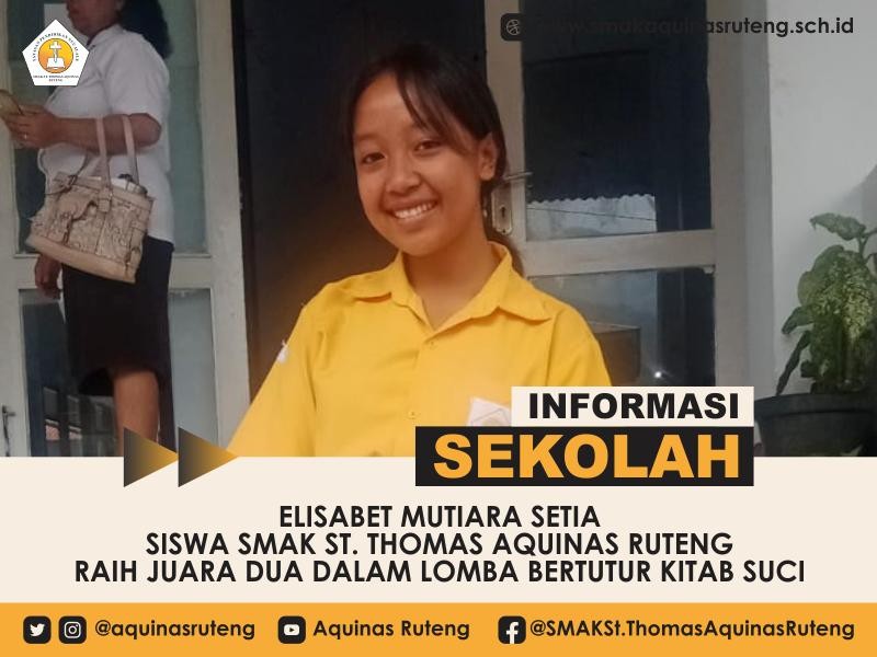 SMAK St. Thomas Aquinas Ruteng kembali berhasil meraih penghargaan prestisius lainya setelah sebelumnya berhasil keluar sebagai juara 1 pada lomba Kuis kitab suci yg diadakan satu hari sebelumnya kali ini SMAK St. Thomas Aquinas Ruteng lewat Elisabeth Mutiara Setia keluar sebagai juara kedua dalam Lomba Bertutur Kitab Suci pada perayaan Bulan Kitab Suci Nasional tingkat Paroki Katedral Ruteng.