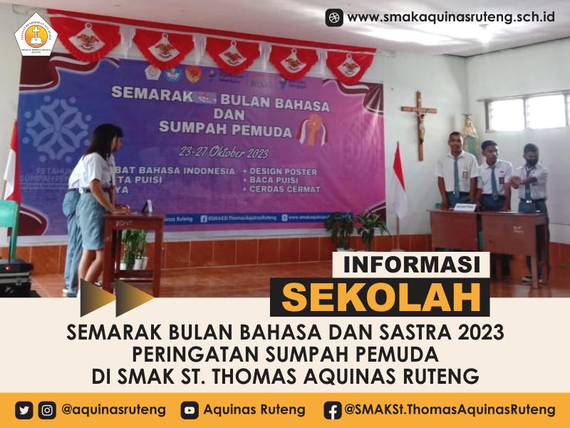 SMAK St. Thomas Aquinas Ruteng menggelar berbagai macam lomba antar kelas dalam rangka semarak Bulan Bahasa dan Sumpah Pemuda. Setiap tahunnya, SMAK St. Thomas Aquinas Ruteng selalu memperingati Bulan Bahasa dan Sastra dengan berbagai macam kegiatan yang menarik. Tahun ini, SMAK St. Thomas Aquinas Ruteng kembali mengadakan berbagai macam event dengan tema yang menarik, yaitu "Literasi dalam Kebinekaan untuk Kemajuan Bangsa". Semangat dan inspirasi selalu menjadi poin penting dalam menumbuhkan jiwa kesusastraan dan seni di kalangan siswa.