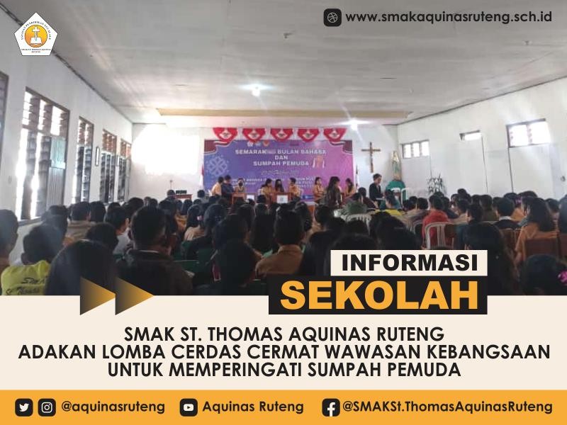 Indonesia adalah negara yang kaya akan keanekaragaman budaya, suku, dan agama. Sebagai bangsa yang berdiri di atas dasar persatuan dan kesatuan, pemahaman akan wawasan kebangsaan menjadi sangat penting. Dalam rangka memperingati Sumpah Pemuda, SMAK St. Thomas Aquinas Ruteng telah menyelenggarakan Lomba Cerdas Cermat Wawasan Kebangsaan yang meriah dan bermakna.