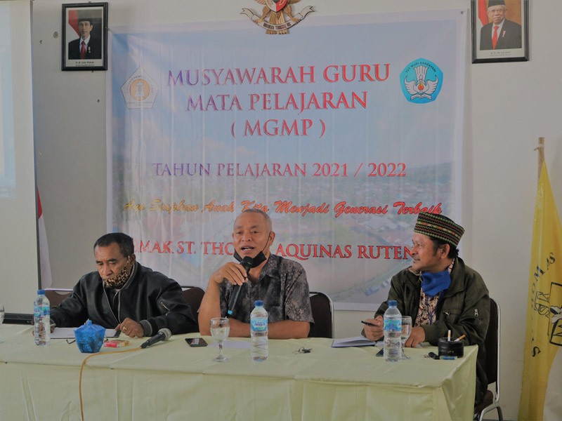 Ruteng, 25/06/2021. SMAK St. Thomas Aquinas Ruteng menyelenggarakan kegiatan Musyawarah Guru Mata Pelajaran (MGMP) dari tanggal 25 Juni 2021 sampai 26 Juni 2021. Kegiatan ini dilaksanakan di tingkat satuan pendidikan SMAK St. Thomas Aquinas Ruteng, yang diikuti oleh seluruh Guru dan Tenaga Kependidikan. Kegiatan ini dihadiri oleh ketua Yayasan Pendidikan Nucalale Bapak Herman Djegaut, pengawas SMA/SMK Bapak Arnoldus Slamet, dan koordinator pengawas Bapak Frans Borgias, yang sekaligus membuka secara resmi kegiatan MGMP di tingkat satuan pendidikan SMAK St Thomas Aquinas Ruteng, Tahun Ajaran 2021/2022.