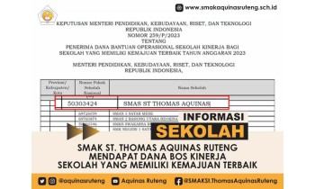 SelengkapnyaRuteng, 30 Agustus 2023 - Prestasi gemilang kembali ditorehkan oleh SMAK St. Thomas Aquinas Ruteng, sebuah lembaga pendidikan yang sudah berusia 53 Tahun. Sesuai Dengan Keputusan Menteri Pendidikan, Kebudayaan, Riset, Dan Teknologi Republik Indonesia Nomor 259/P/2023 Tentang Penerima Dana Bantuan...