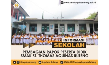 SelengkapnyaSMAK St. Thomas Aquinas Ruteng melaksanakan pembagian rapor semester ganjil tahun pelajaran 2023/2024 pada Jumat, 22 Desember 2023. Kegiatan ini berlangsung di halaman sekolah dan diikuti oleh seluruh peserta didik, guru, dan staf sekolah.Kegiatan dimulai dengan pembacaan juara dari ...