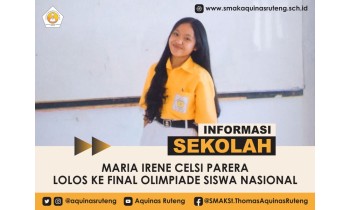 SelengkapnyaMaria Irene Celsi Parera, siswa kelas X SMAK St. Thomas Aquinas Ruteng, berhasil lolos ke putaran final OSNP 2023 (Olimpiade Siswa Nasional - Persatuan Batch II Tahun 2023) untuk mata pelajaran ...