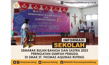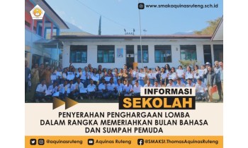SelengkapnyaDalam rangka memperingati Bulan Bahasa dan Sumpah Pemuda, Kepala Sekolah SMAK St. Thomas Aquinas Ruteng, Fransiskus R. Rusman,S.Pd, memimpin acara penyerahan penghargaan untuk berbagai lomba bahasa yang diadakan di SMAK St. Thomas Aquinas Ruteng. Lomba-lomba tersebut meliputi Cipta Puisi, Baca...