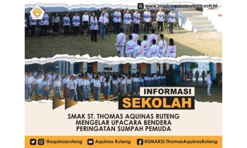 SelengkapnyaSMAK St. Thomas Aquinas Ruteng menggelar upacara bendera peringatan Sumpah Pemuda pada tanggal 28 Oktober 2023 di lapangan upacara sekolah. Upacara tersebut dihadiri oleh seluruh peserta didik, guru, dan karyawan sekolah.Salah satu momen paling khusus adalah pengibaran bendera, yang ...