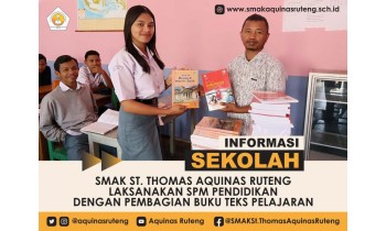 SelengkapnyaRuteng, 3 Oktober 2023 - SMAK St. Thomas Aquinas Ruteng melaksanakan kegiatan pembagian buku teks pelajaran kepada peserta didik pada tanggal 3 Oktober 2023. Kegiatan ini merupakan salah satu bentuk pelaksanaan Standar Teknis ...