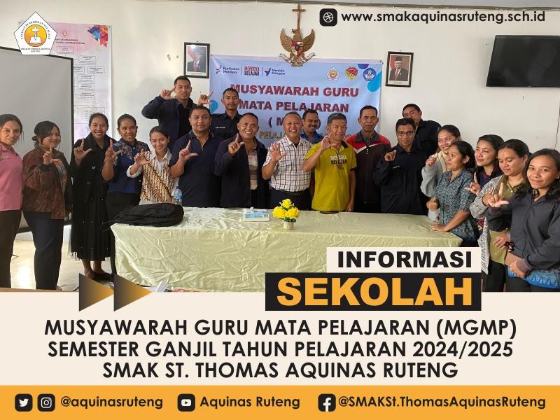 SelengkapnyaSMAK St. Thomas Aquinas mengadakan kegiatan Musyawarah Guru Mata Pelajaran (MGMP) Semester Ganjil Tahun Pelajaran 2024/2025 pada tanggal 12 Juli 2024. Kegiatan ini diikuti oleh semua guru SMAK St. Thomas Aquinas dan bertujuan untuk mempersiapkan guru dalam mengimplementasikan Kurikulum Merdeka...