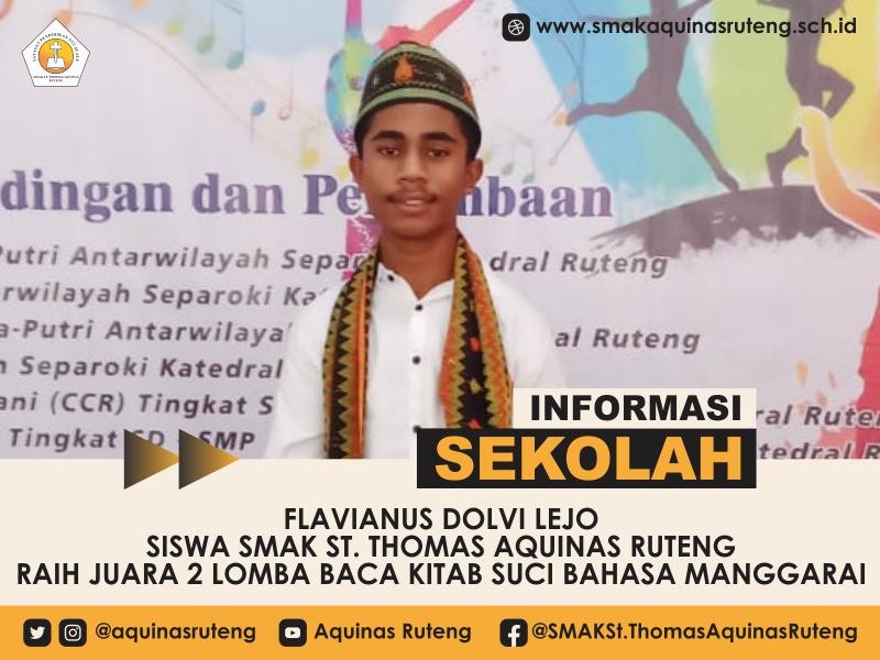 SelengkapnyaSMAK St. Thomas Aquinas Ruteng meraih prestasi membanggakan dengan meraih juara 3 dalam Lomba Video Kreasi yang digelar oleh "Yayasan Gembala Baik Karya Sosial Weta Gerak", dalam rangka memperingati perayaan International ...
